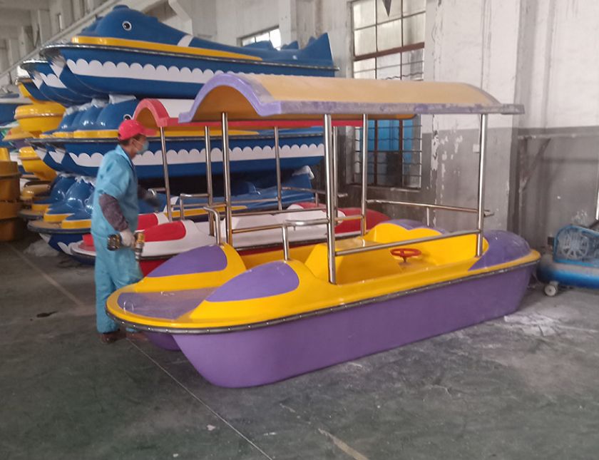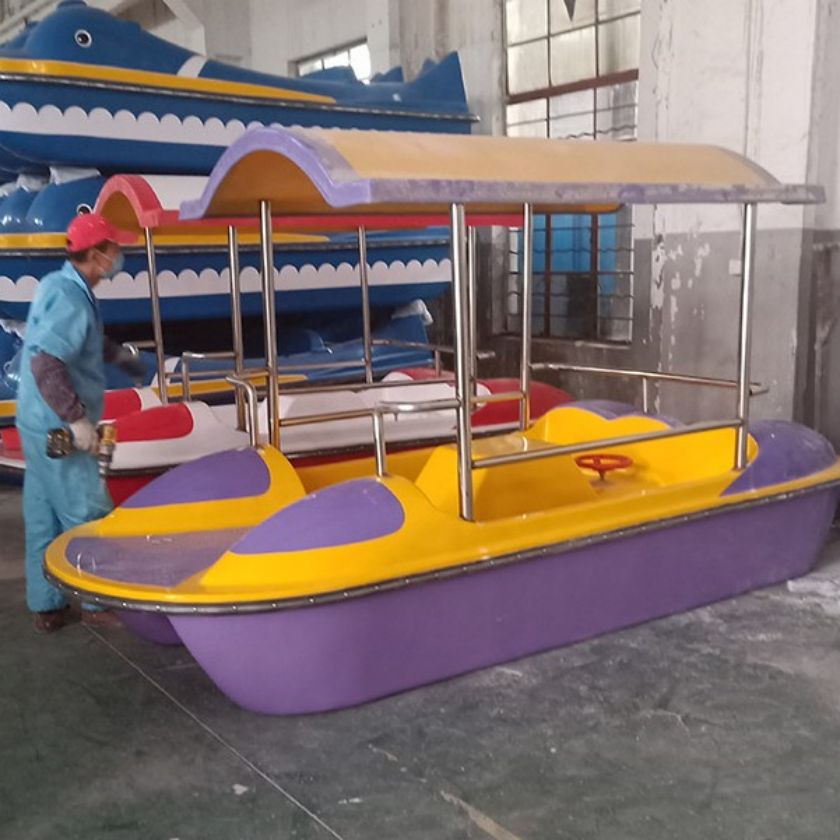 Experience the fun of water adventure with our fiberglass 4-passenger garden pedal boat. Buy now and create unforgettable memories with your loved ones.